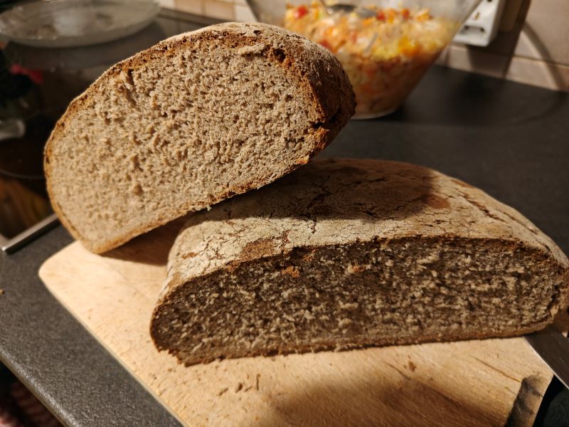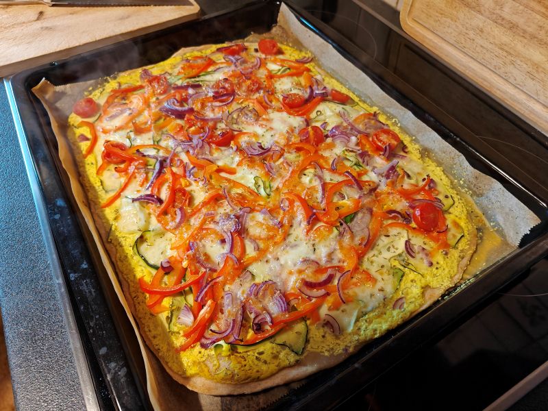 Schon bald zeigten sich rote Sonnenuntergänge (Red-Sunset-Flammkuchen) und mäßig fleißige Milchsäurebakterien unterstützt von emsigen Hefepilzen (selbstgemachtes „Sauerteigbrot“) im Backofen. Der nicht alltägliche Rettich kam genauso zum Einsatz wie die verschiedenen (Pseudo)getreidearten Hirse, Rollgerste, Mais, Buchweizen und Quinoa in Form von Risotto, Laibchen, Salat oder Eintopf-Einlage. Es wurde gehackt und gewürfelt, gebacken und geknetet, gerührt und geformt, gebraten und gedämpft, geköchelt und geschnitten, geschmort und gratiniert, gemischt und gewürzt, garniert und fotografiert. 😊 Und schließlich gegessen und genossen, geschlemmt und vorsichtig probiert, getafelt und verzehrt, herzhaft zugegriffen und schnabuliert.