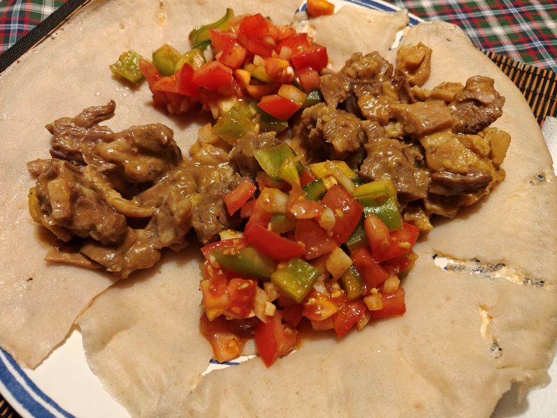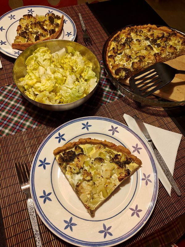 Mal waren der Kreativität keine Grenzen gesetzt (Kürbis als Dessert), mal setzte sich völlig fantasielos ein Gabelroller auf den Teller. Eine stundenlange Vorbereitung (beim finalen äthiopischen Festmahl) durfte genauso nicht fehlen wie zeitsparende Fertigsalate aus dem Glas. Spätes Heimkommen und „allein-zu-Haus“-Umstände brauchten Blitzrezepte um drohende Leberkäs-Semmeln zur schnellen Hungerstillung unterwegs abzuwenden. Die Eierspeis mit Tomatenmus und grünem Salat sorgte dabei für hurtig gezauberte Farbe am Teller. Zwischendurch durfte es aber auch ruhig wieder ein bisserl aufwendiger werden (Quiche).
